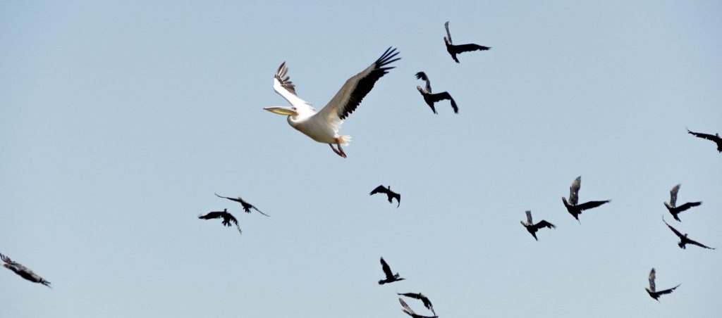 The day was perfect—cool but with bright, warm Southern California sun shining down from a cloudless blue sky. As I sat at my bench for the first time I noticed that a hummingbird kept perching nearby. As he flew off, I turned my gaze upwards to the brilliant sky above, and was amazed to see a flock of huge pelicans soaring in two opposing spirals immediately overhead. For several reasons, these sightings caught my attention.